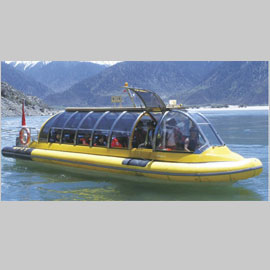 船體材質(zhì)玻璃鋼,具有強(qiáng)度高、重量輕、耐腐蝕、不怕日曬雨淋、色彩艷麗、外型美觀的特點(diǎn)。艙內(nèi)牽引電機(jī),電瓶驅(qū)動(dòng),沒(méi)有污染,可由游客自行駕駛。